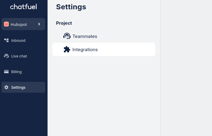 Configuración ➜ Integraciones en tu Panel de Chatfuel.2. Ve a