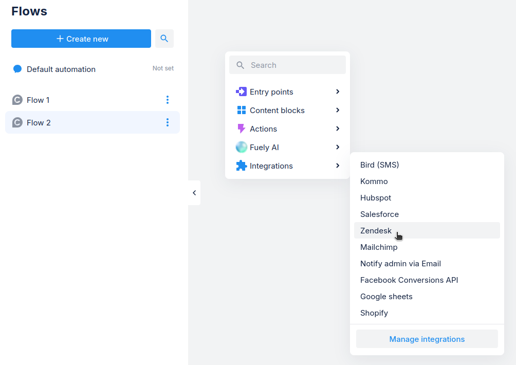 Ahora, estás listo para usar Zendesk en tus Flujos.
